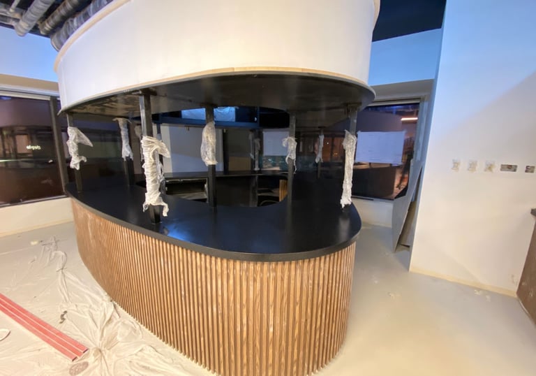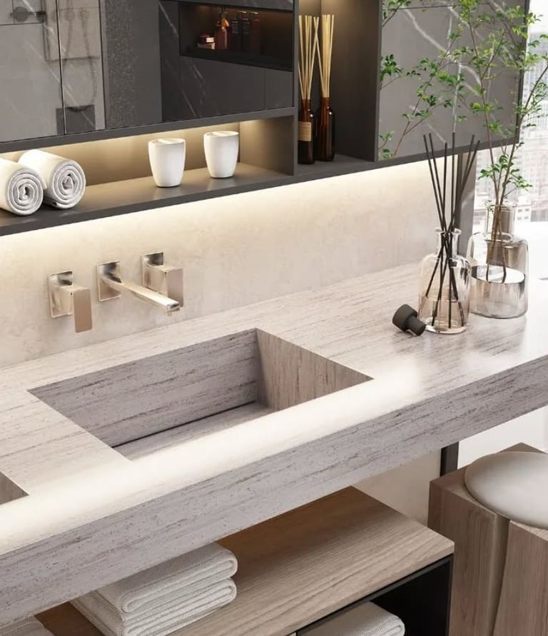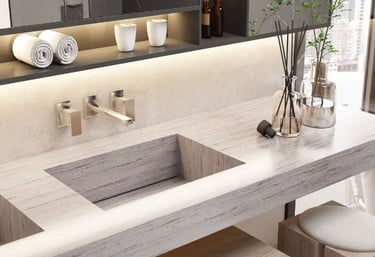 تصميم وتنفيذ مشاريع داخلية باستخدام الرخام الصناعي تفاصيل دقيقة وتشطيبات راقية