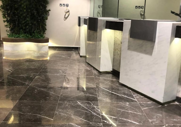 اعتماد أحدث التقنيات والاتجاهات العالمية في تصميم وتركيب الرخام الصناعي